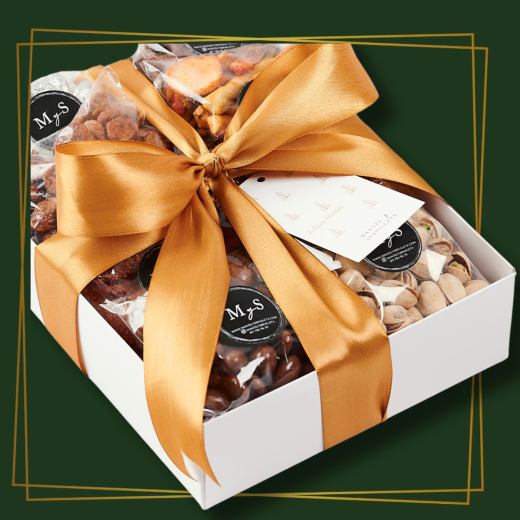El detalle perfecto. Variedad de botanas en caja de regalo.