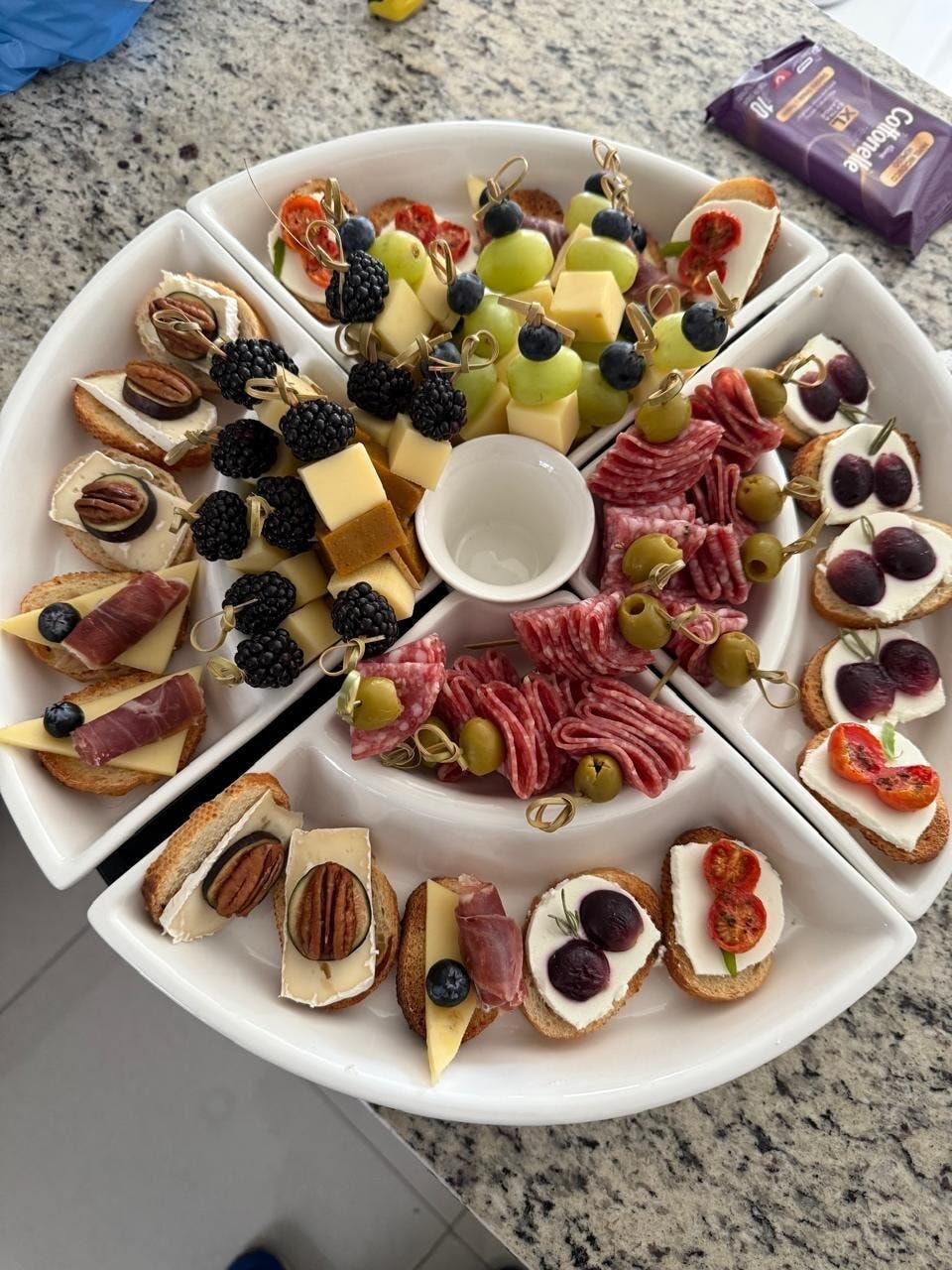 Nuestros favoritos son: el crostini de queso brie higo y miel, el de prosciutto con queso, el de uva rostizada con queso cremoso, el de queso de cabra con aceituna y anchoa y el caprese de tomate rostizado con queso cremoso.